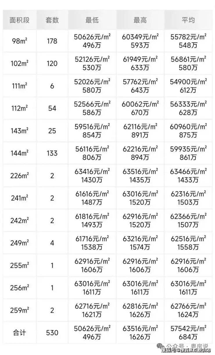 折后均价5.22万/㎡,折后单价4.58-5.72万/㎡,其中3房总价530万起,4房总价543万起,6房总价1212万起。