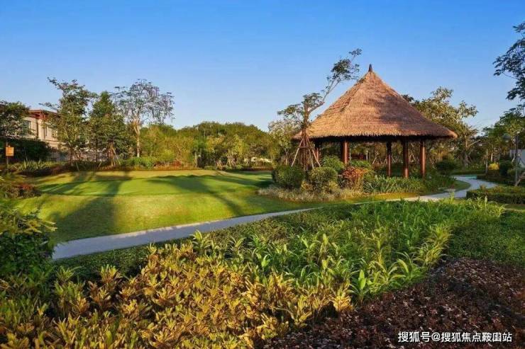 在东南亚风情园林中,融入椰子树、霸王棕、银海枣、火山石等海南当地特色自然元素,让海南的火山群地貌与热带雨林生态,真正地走进日常生活环境中。