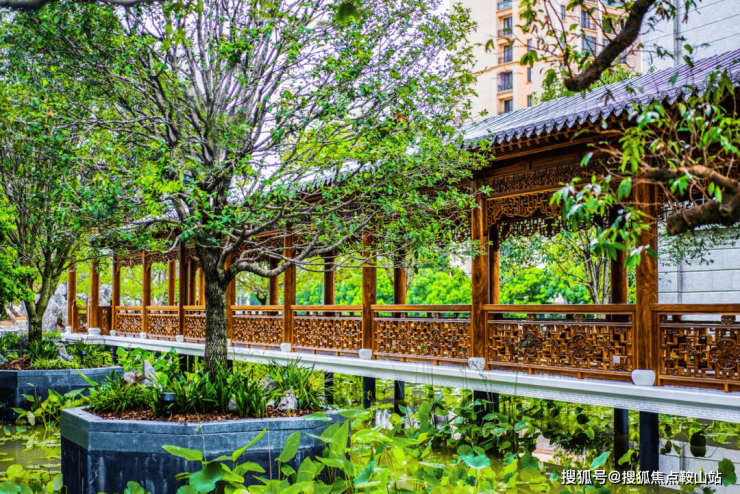 游园寻梦时,沿廊而行,《山居秋暝》的诗画意境在眼前缓缓打开,有自然的青绿,也有古韵的典雅。其中,或是与三五友邻,在淡雅的茶香与清新的荷香中共鸣自然万物的灵光;或是与家人孩子看雕梁画栋,沉醉中国文化的精髓。最美好的园居生活,自然竟与人文如此和谐 。