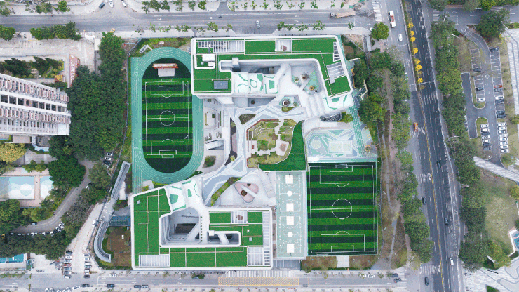 3层,是体育会所,规划有篮球场、羽毛球场、健身房、泳池等运动休闲空间。