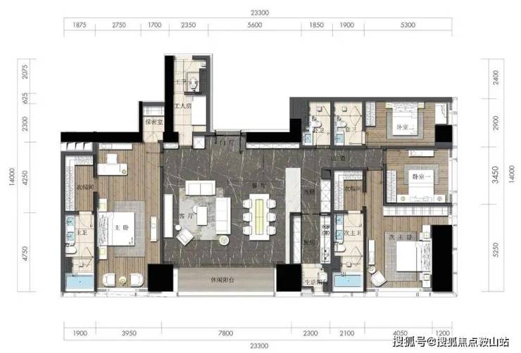 观景阳台:高区340平米户型,东面23米宽无敌海景视野(塔楼总观景面约46米)