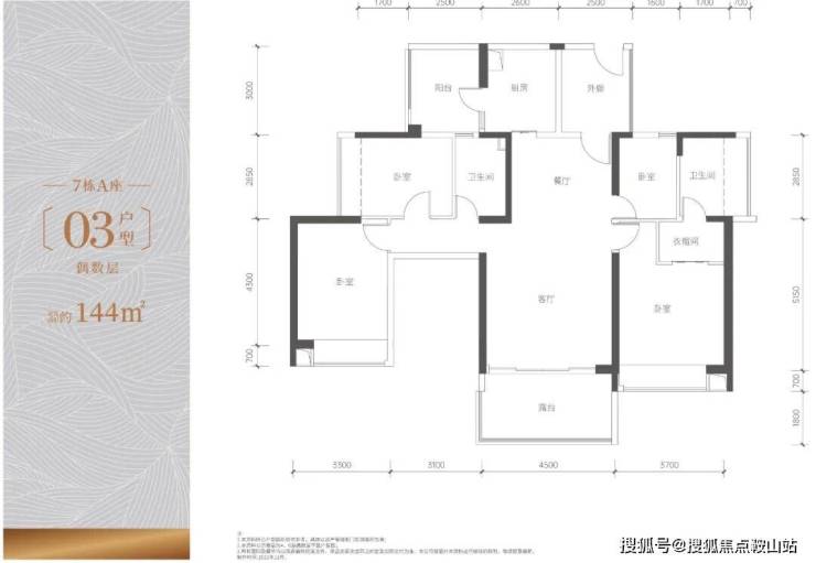 户型设计,三厅五房(多套房)双园景,满足三代甚至四代同堂的产品需求,同时配有多可上升星空露台空间,充分满足天际需求
