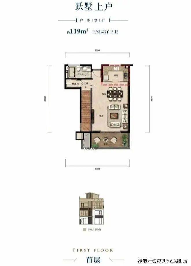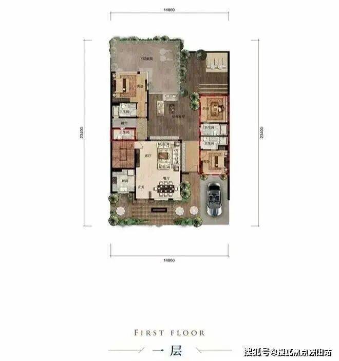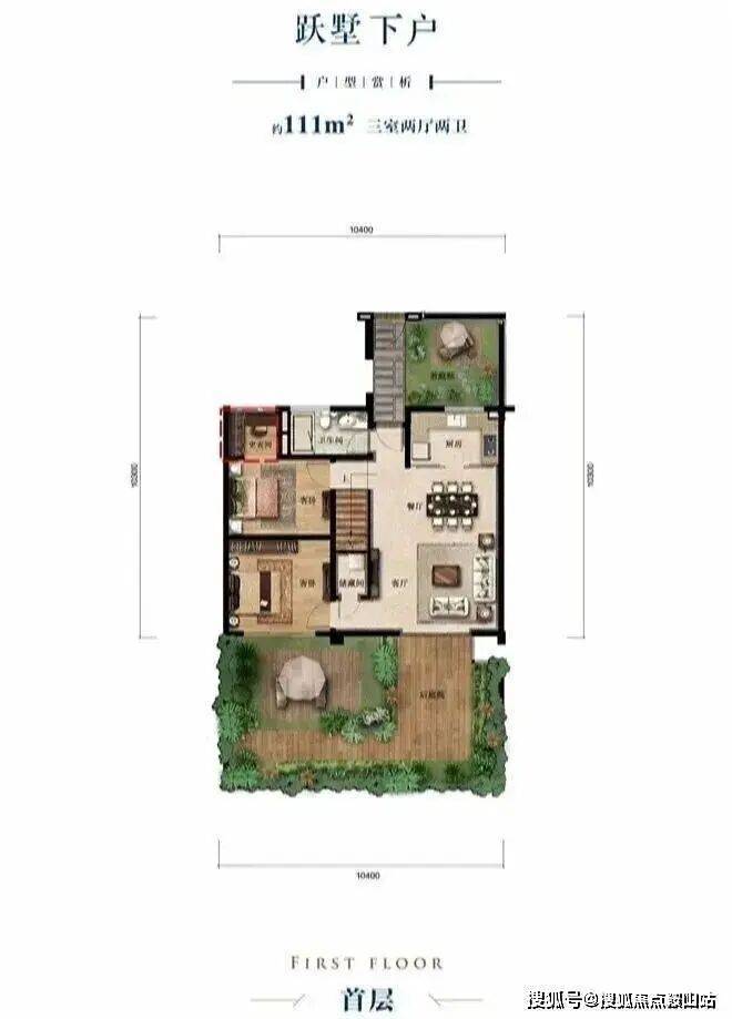 首层独立入户、餐客厅等宽一体设计、方正露台