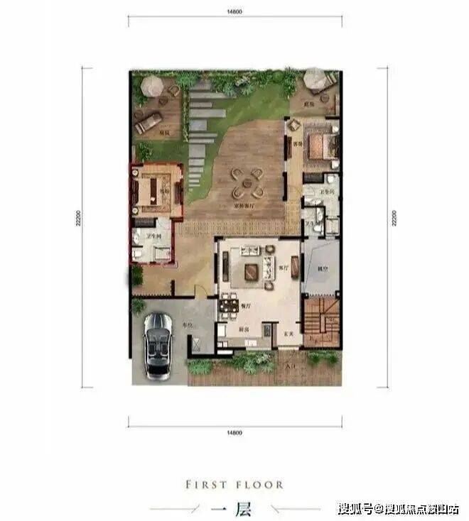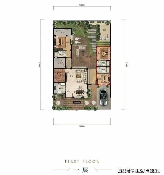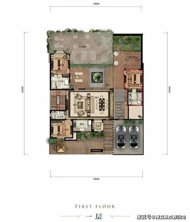 首层前庭后院、餐客厅等宽一体设计、双卧室