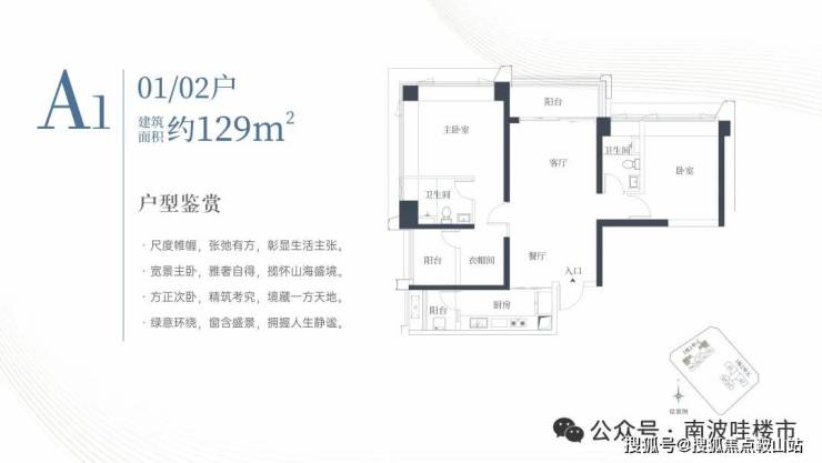 🔹1栋一单元A1、A2户型:面积约为129㎡