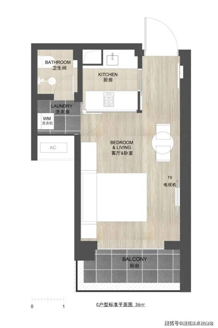 50㎡1房,带生活阳台,传统一房一厅布局。