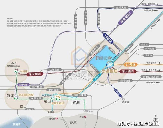 直连大运枢纽,东部唯一集城际、快线、普线于一体的交通枢纽,四轨交汇,3/14/16号线(已开通)和深大城际 (建设中),畅达全城。