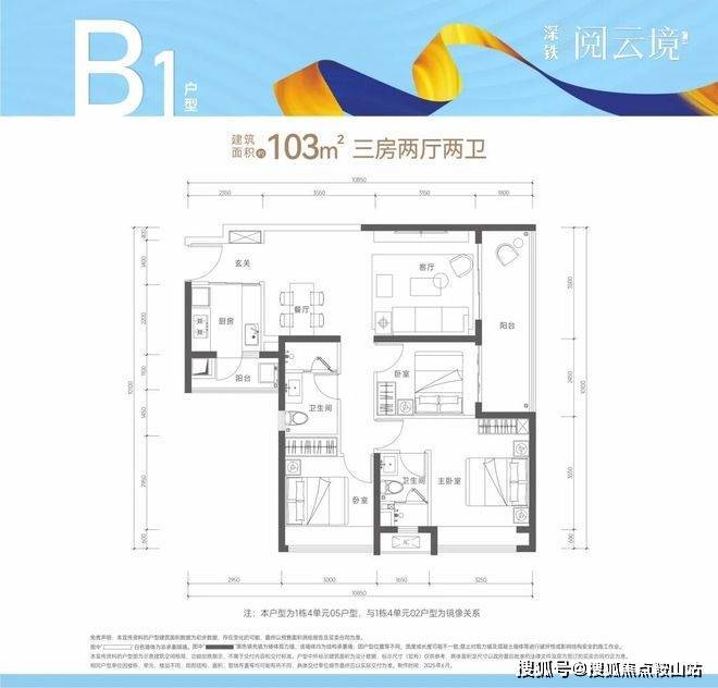 【建筑面积103㎡3房2卫】