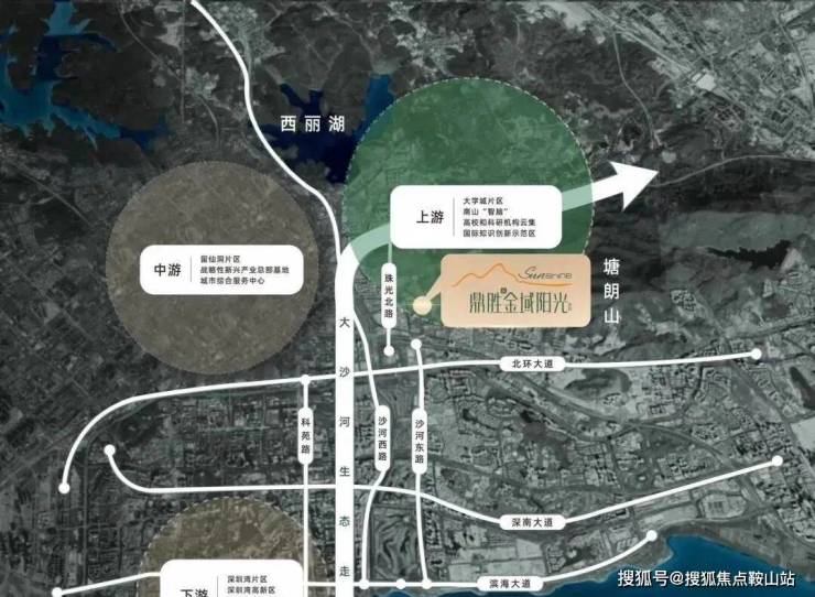 鼎胜金域阳光家园坐落于西丽中心区,具体位于珠光北路与留仙大道交汇处的南面,大致在大沙河流域中北段的东侧,背靠塘朗山,并被半包围着。