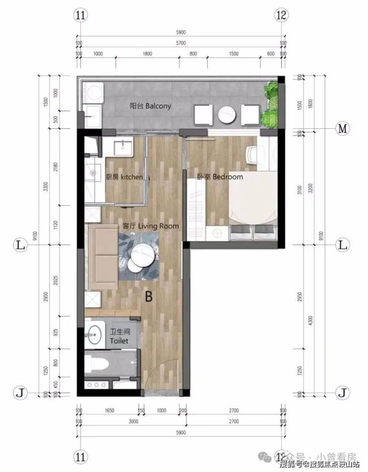 最小的 48㎡单位,基本就是“一眼睇晒”的一房一厅,卧室连阳台,应该比较舒适。