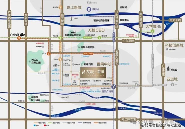 项目坐拥番禺TOD交通枢纽,地铁3号线、17号线(规划中)、18号线、22号线四轨接驳,湾区最快地铁18号线,时速可达160公里,一站直达天河,占位交通便捷之处,让工作与生活的切换更便利。