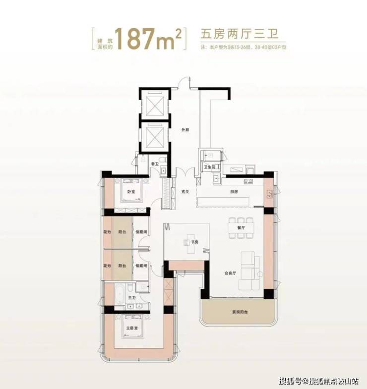 顺应市场需求,本次首推3栋主力户型建面约127-187㎡纯改善产品,足够的空间尺度、私密度让居住者才有更好的体验感。