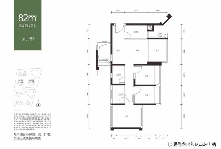 建面约82平户型图