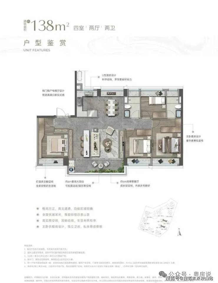 这次推出的138㎡为小区楼王3/4栋,17层2梯2户板楼,带独立电梯厅,可以做5房,赠送后得房率去到94-97%