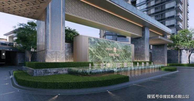 ②门仪:约70m宽奢阔主入口,绿奢石照壁、天然花岗岩门头