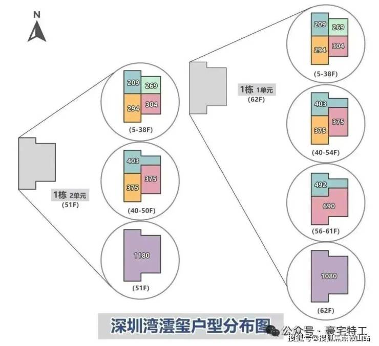 超高区58F起(200米以上)是约500-700㎡顶级大平层;