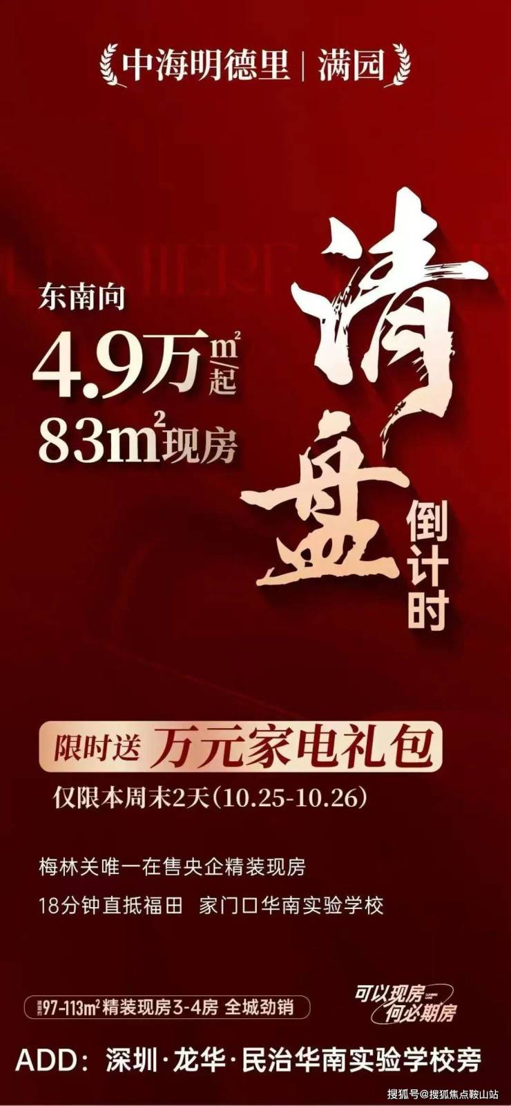 最新消息:位于龙华民治梅林关的【中海明德里】推出10套团购房,可做高评高贷,90多三房单价折后差不多能做到4.7万上下