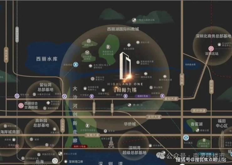 留仙大道正席,紧邻地铁5号线塘朗站,4/5/7号线3轨环绕,毗邻“三纵五横”主干道,瞬息通达全城。西丽高铁站(建设中)、深圳北站两大枢纽环绕,拥有世界交通能级。