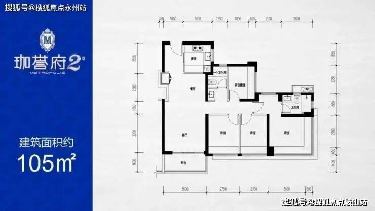 105㎡的4房2厅2卫,设计的是竖厅格局,动静分区,客厅3.6米开间,S墙设计预留冰箱卡槽位,4个卧室分别为3.3/2.75/2.35/2.35米的宽度,主卧270°环幕飘窗视野,U型厨房,阳台进深1.6米,得房率:77.31%(不含赠送),西南或东南朝向看小区花园。