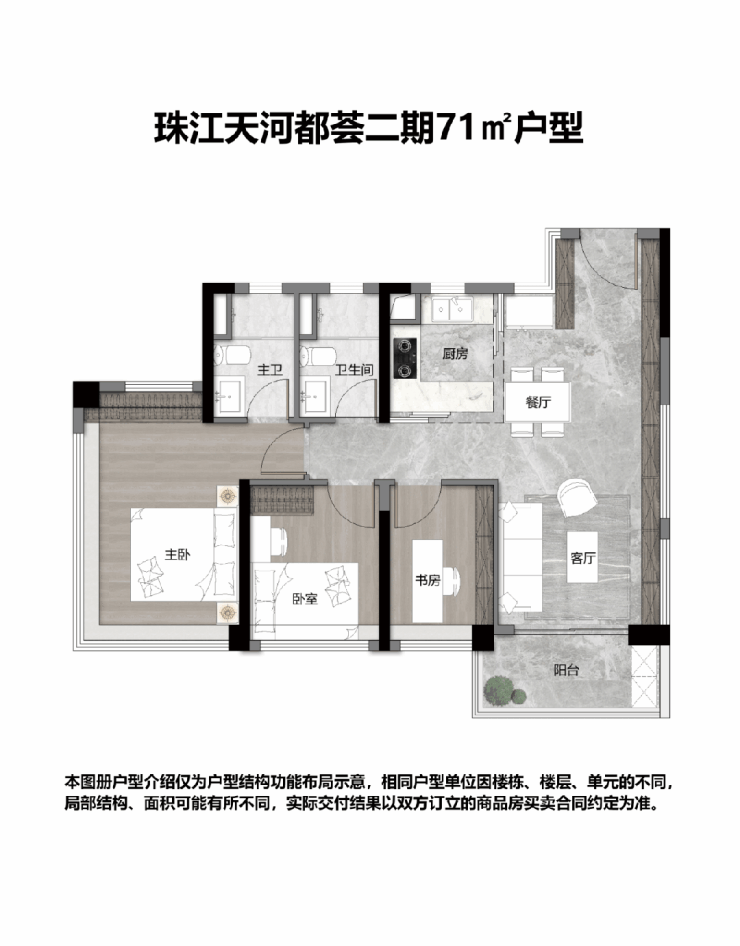 最大的亮点,是72平做到三房两卫,且全部卧室都是南向。