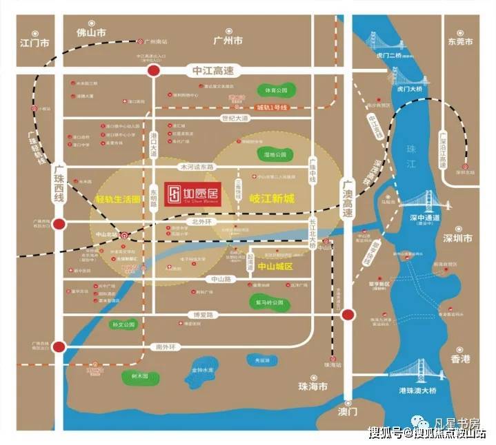 想外出:毗邻城轨中山北站/中山站(深茂铁路接驳)畅达全城;听两首歌连接深中通道出入口,直通深圳前海,实现深圳同城生活圈。