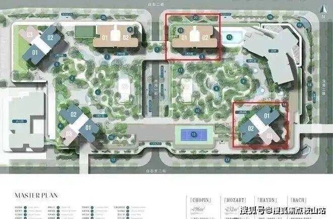 户型面积段设计为196-252-328㎡3-4房和400-600㎡顶层复式
