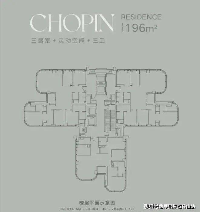总楼层:1A栋41层;2A、2B、2C栋42层;1B栋59层;1C栋自持租赁54层;幼儿园4层。