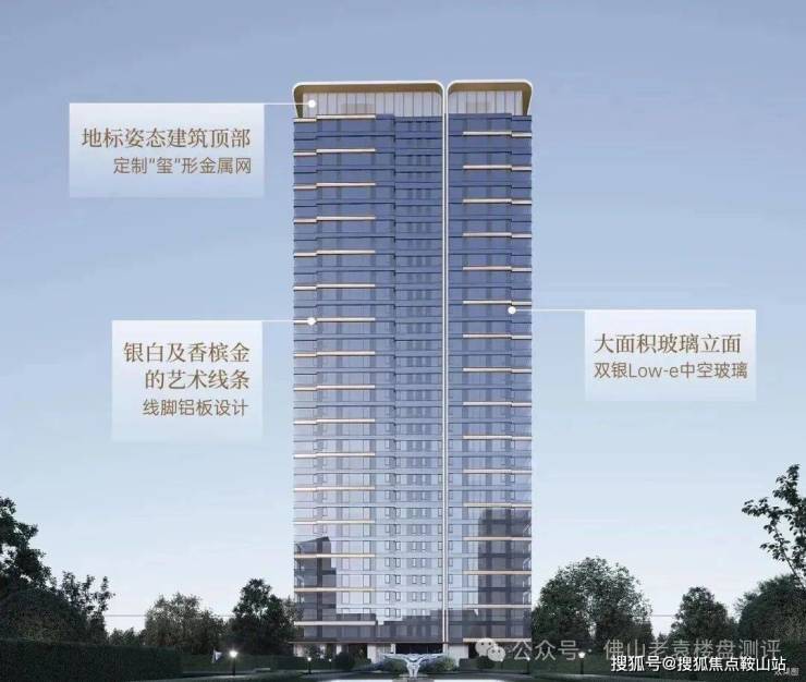 首先,辨识度极高的公建化外立面:大面积玻璃幕墙+铝板及奢石堆砌,塔冠定制玺型符号,辅以银白和香槟色艺术线条装饰,勾勒出贵气又不失典雅的艺术张力。
