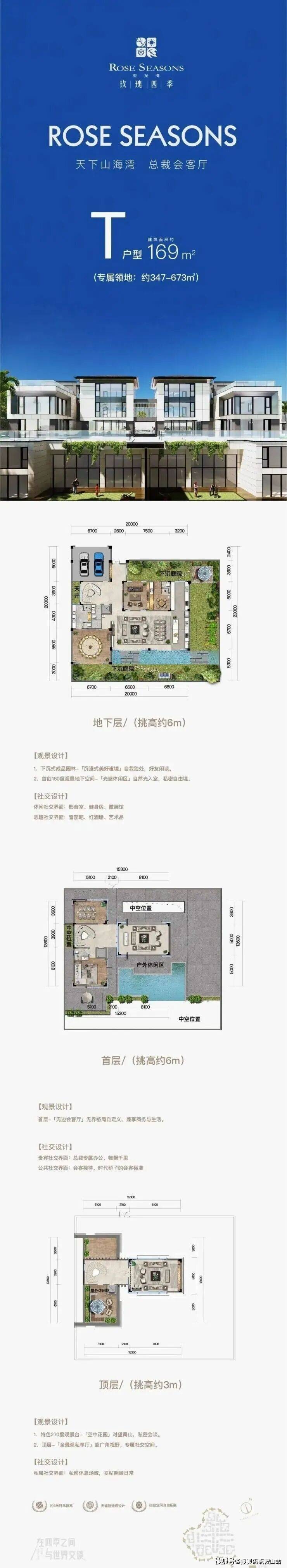 三层空间五个界面(顶层挑高约3m+首层挑高约6m+地下层挑高约6m)
