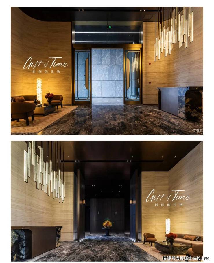 设计上采用了汲取自洛杉矶的迪斯尼音乐中心、巴塞罗纳奥林匹克村的解构主义设计手法,使整体空间更具艺术感。精选威尼斯棕大理石铺陈地面,搭配意大利进口超白洞石墙面,营造高雅氛围;蛋壳漆吊顶则以柔和光泽提升空间质感。同时,细致考量电梯乘坐感受,将电梯轿厢高度提升至2.8米(优于常规2.6米),营造更显开阔、舒适的归家与通行体验。