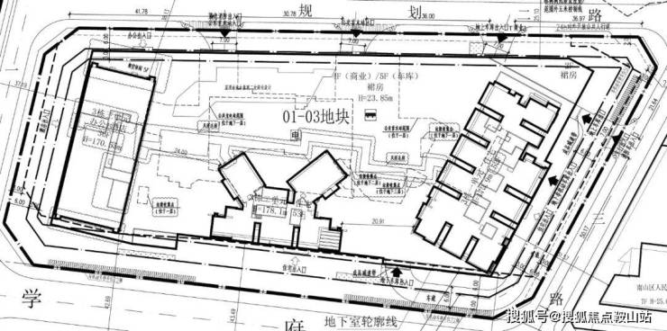 03地块,规划总建面约17.6万㎡,容积率11.44。规划住宅建面约7.65万㎡,商业建面约1.5万㎡,办公面积约0.6万㎡,酒店约1.9万㎡。
