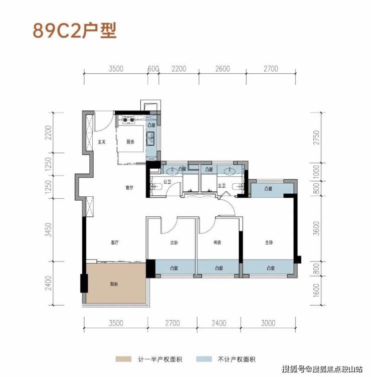 相比89E户型,飘窗设计相对较少,整体赠送空间与市场主流产品接近,实用率约95%。户型规划方正,动静分区合理,采用四开间朝南设计,采光和居住舒适度较好,算是中规中矩的产品。