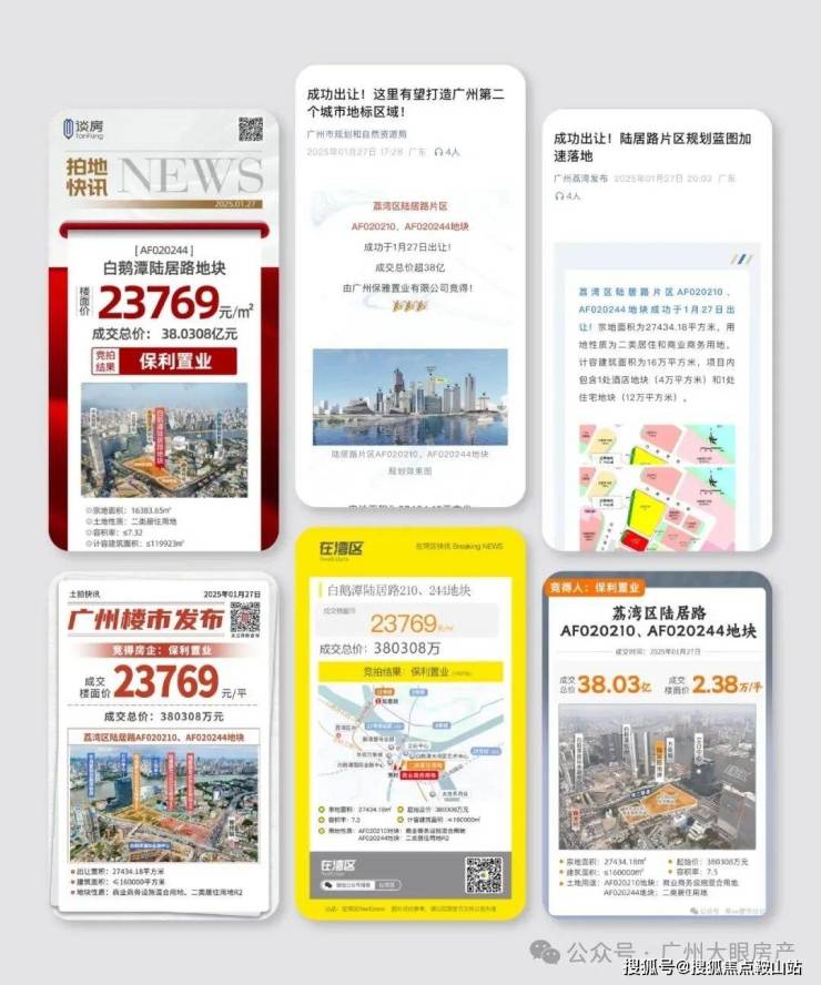 拿地即爆,传奇甲第系锚定世界白鹅潭,时间回溯至2025年1月27日,保利置业广东公司以38亿成功竞得荔湾区陆居路AF020210、AF020244地块。消息一出,迅速点燃市场热情,各界目光纷纷聚焦于此。