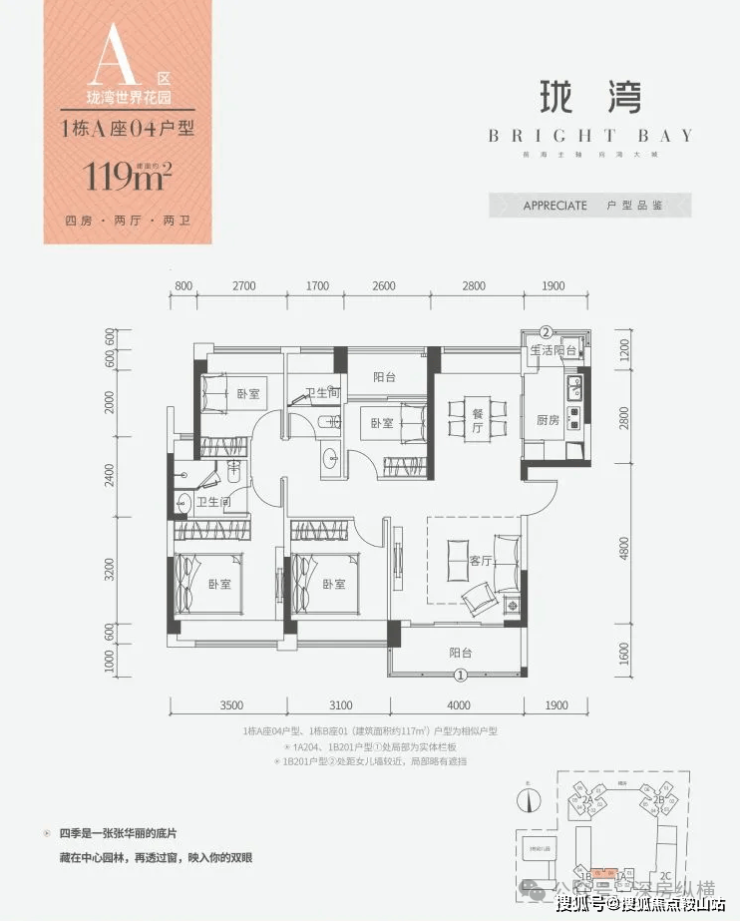 住宅户型建面约82-119㎡,均价约5.3万/㎡,单价区间在4.9-5.7万/㎡,总价区间在420-621万/套。