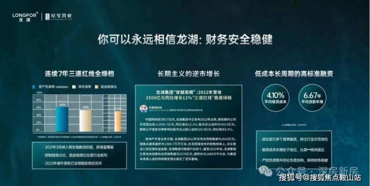 龙湖集团是一家世界五百强、全国前十强开发商,93年成立于重庆,目前总部在北京, 09年在香港联交所主板上市,龙湖业务涵盖广泛,拥有5大主航道业务,地产开发、商业运营、租赁住房、智慧服务、龙智造,并积极试水养老、产城等创新领域;布局全国高潜力城市群及都市圈,稳健的业务增长、高效的运营体系,让龙湖赢得了客户、政府、投资者以及同行的广泛认可; 30年以来龙湖进驻了全国五大城市群,100余个城市,累计开发超1000个品质楼盘,园林景观更是业界标杆,拥有国家一级资质物业,使“龙湖生活”成为品质生活的代名词,口碑相传。龙湖的财务非常稳健-连续7年三道红线稳居绿档,为您的房产保驾护航