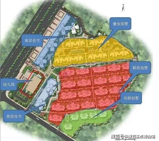 从整体的产品配置来看,开发商还是有效的利用了景观资源,产品分类也非常清晰,按照景观的优质程度依次排序为,双拼别墅、联排别墅、叠加别墅和高层住宅,公建配套的商业和幼儿园临主干道。