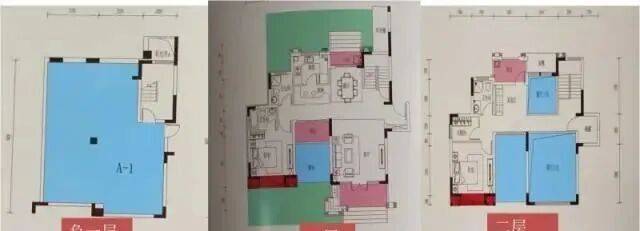 联排边套户型,能够送出更多面积,蓝色部分均为附送面积,原面积为214.1-215.23㎡,但附送之后的面积去到600平米左右,真正实现了200%的使用率。