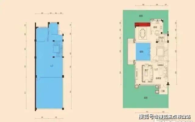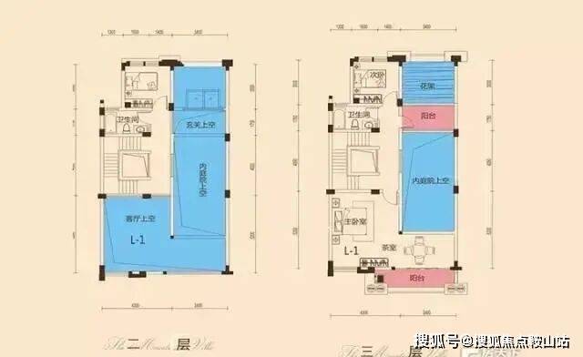 联排别墅中间套,L1户型面积仅189.59-190.48㎡,但蓝色部分均为附送面积,不算花园部分,仅建筑部分扩展后面积就达500多平米,充分利用了挑高,镂空及局部搭建,其建筑面积扩展后可以大大提升实用效果。