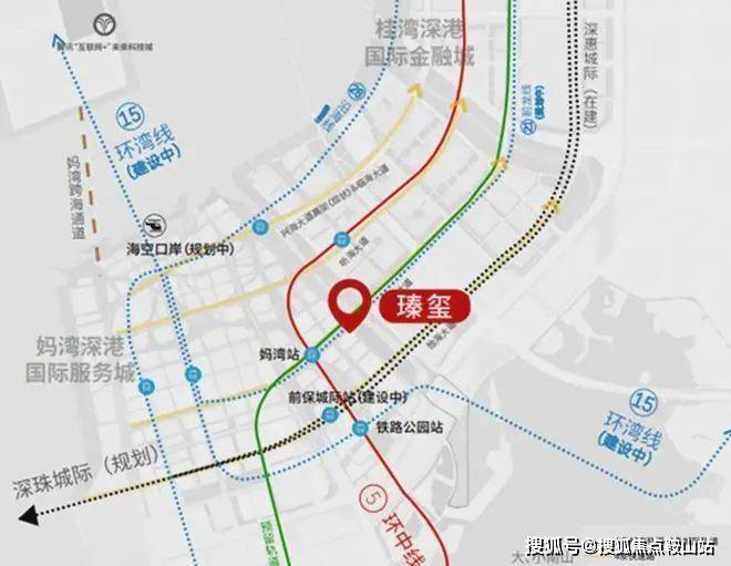 步行约500米到5号线妈湾站,约700米到铁路公园站,临近月亮湾大道和广深沿江高速,还有在建的妈湾隧道,及规划的15号线,可快速通达南山、福田和宝安。