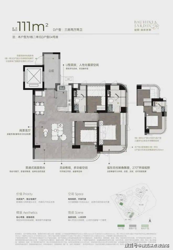 梯户比例:4梯5户,分布式电梯设计,独立电梯厅