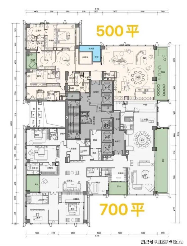 首推北区1栋、2栋,共约348套,分高低区设计: 低区(5层起,150米内):约209-304㎡四房以上大户型。 高区(42层起,150-200米):约370-403㎡ 4+1房五卫,带家庭厅及家政套间。 超高区(58层起,200米以上):约500-700㎡顶级大平层。 顶楼:约1050㎡整层大平层(仅3套)。