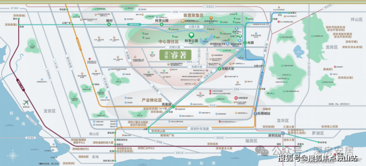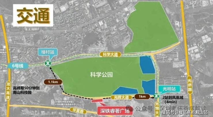 深铁睿著广场:项目北侧的光明科学公园,总占地208万公顷,预计2024年完工总体工程的60%,并且同步开园一部分。