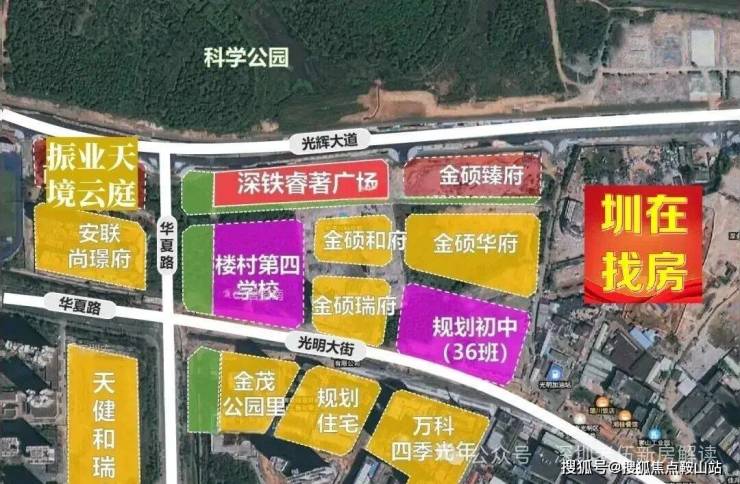 ——南侧:学校地块(深圳外国语光明学校集团下的楼村第四学校[暂定名])和住宅金硕和府