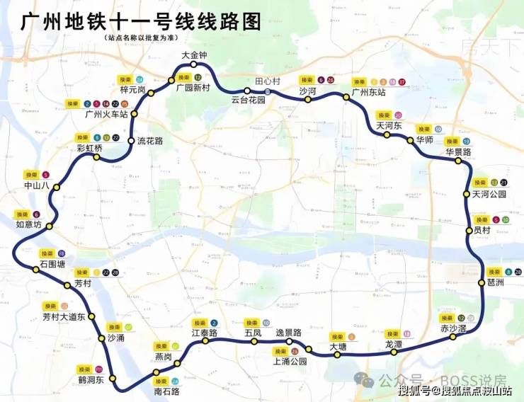 11号线是广州首条市区大环线,串联广州中心五区,与广州现有及未来的所有地铁实现换乘,被称为“换乘之王”(已经开通)虹吸全广州的优质资源;