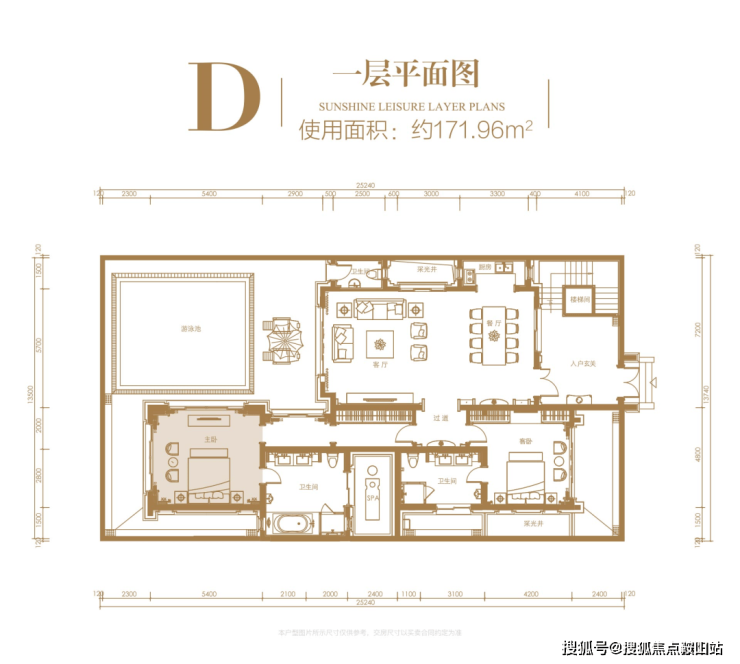 一层:使用面积约 171.96㎡,