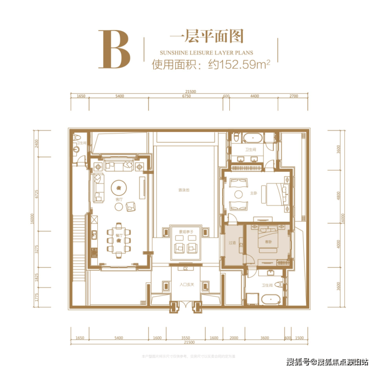 一层:使用面积约 152.59㎡,
