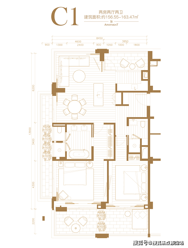 建筑面积约:156.55-163.47㎡