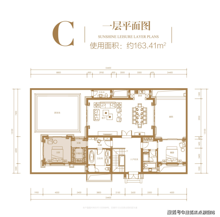 一层:使用面积约 163.41㎡,
