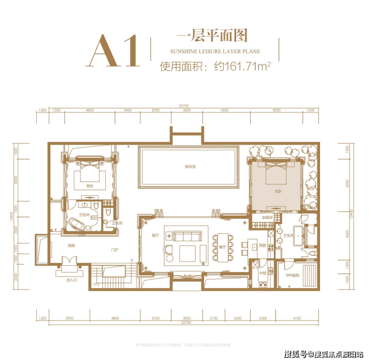 一层:使用面积约 161.71㎡,