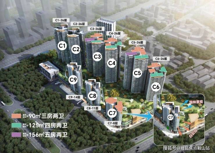 主要是在售白云大道最远的C2栋 26层高 90平跟125平,还有C7栋 8层高 2梯4户的低密度洋房。